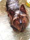 Leena is an adorable, approximately 6 lb yorkie. She has been in foster care being completely loved. She needs to be the one & only lapdog in an adult household. Leena is wee pad trained, LOVES her doggy clothes, playing fetch, sitting on your lap, going for car rides & walking on the leash....This pup was obviously very loved & spoiled in her previous home & will make the perfect lap companion. We feel that Leena would do best in a home that doesn't have small children or other dogs.
