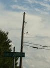 The top piece of the Forest Garden Drive telephone pole could be seen smoldering in the street, with live wires still attached at about 1:30 p.m. JCP&L was on the scene by that time evaluating the damage.