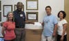 Representatives of the Women of Temple Shalom (WTS) presented donations to two local food pantries. Dana Battaglia (left) and Kendal Karten (right) of WTS presented a check to Susan Pike of the Matawan United Methodist Church food pantry in Aberdeen. A second donation was given to Isaiah G. Cooper and William Seaman of the Keyport Ministerium.