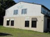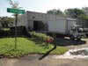 Currently, there is a plastic banner on the face of the building identifying it as Acme Party Rental, a gravel parking lot without specifically marked spots and no parking lot lighting.