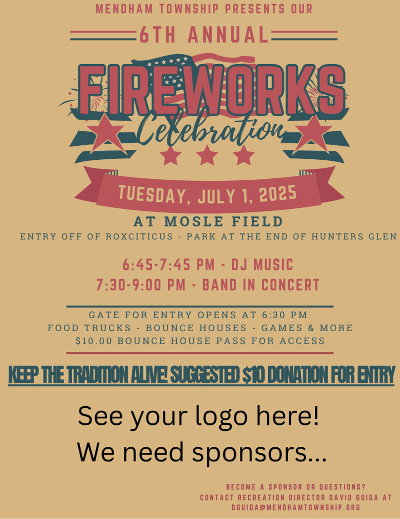 *For more information about the Fireworks celebration and sponsorship opportunity, please reach out to David Guida at dguida@mendhamtownship.org