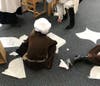 Students at Mendham Township Elementary School create crafts and participate in activities from times long ago.