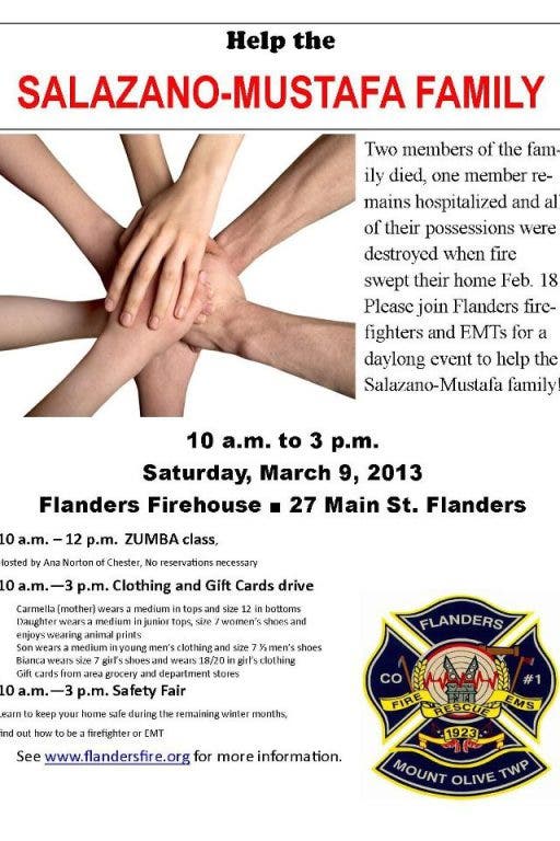 Flanders firefighters and emergency medical technicians have planned a daylong event from 10 a.m. to 3 p.m. March 9 at their firehouse at 27 Main Street to help the survivors, who lost everything in a fatal fire on Feb. 18.