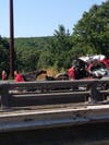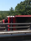 The call came in around 10:08 a.m., Sgt. Jeff Flynn said. A tractor-trailer and at least one other vehicle were involved, and as a result of the collision, the truck was hanging over a bridge with New Jersey Transit train tracks beneath it near Exit 28 in Roxbury Township, Flynn said.
