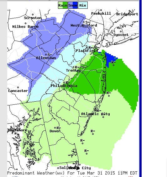Pictured: Weather map of forecasted precipitation for Tuesday, March 31.