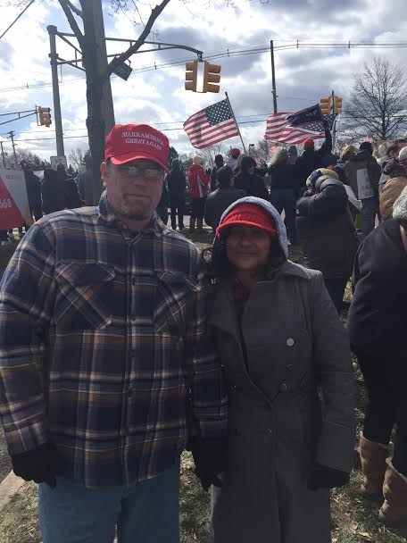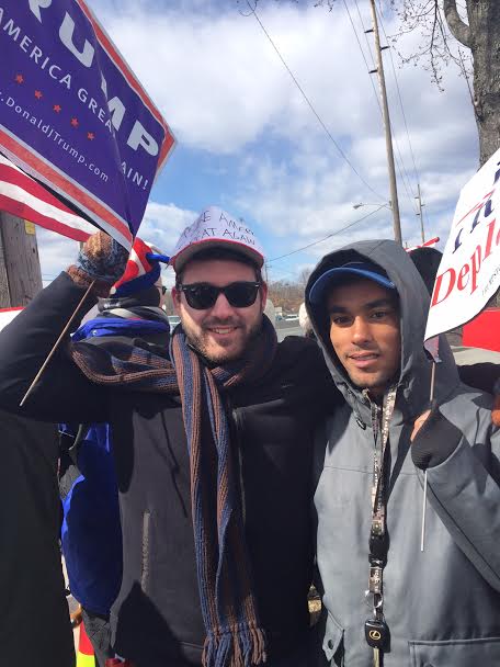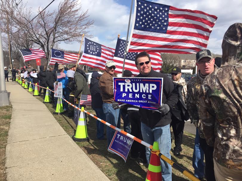 Two friends who graduated from Holmdel High School were in the crowd. Nicholas King, 22, said he became a Trump supporter in November while living in Orlando; his apartment was robbed and he was shot by the men who did it. They were illegal immigrants, he said.