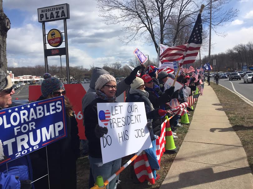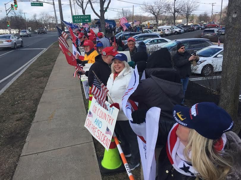 MIDDLETOWN, NJ - The temperature kept dropping, but they just kept coming. An estimated 200 people stood in bitterly cold wind outside the Middletown ShopRite plaza Saturday, proudly showing their support for President Donald Trump.