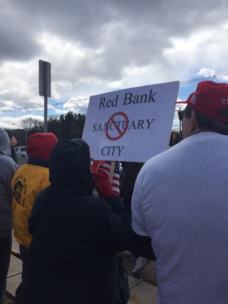 The crowd shouted "USA!, USA!" Many there despised the notion of sanctuary cities and held signs to that effect. Red Bank recently debated becoming a sanctuary city.