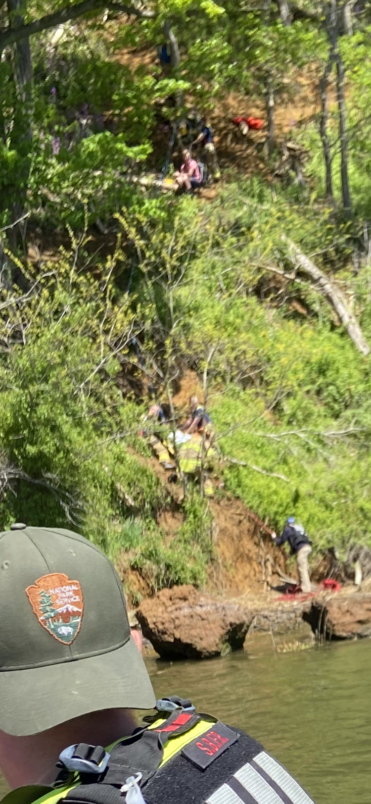The hiker had to be put into a stokes basket, and then lowered using ropes and pulleys down the 100-foot embankment to the river. From there, the hiker was put into an awaiting boat operated by Sea Bright Fire Rescue and then taken to an ambulance at Black Fish Cove.