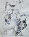 Yaniv uses hand-made marks — writing, doodling, gesturing and diagramming — within her images. "While I am channeling this world of information through personal vision, one of my key challenges is to invite viewers to find unexpected connections within their own experiences," she said.