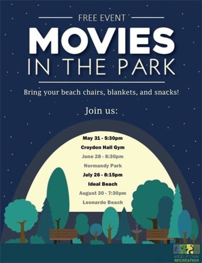 MIDDLETOWN, NJ — Mark your calendars: Middletown's free summer movies in the park schedule is out. The Twp. will be showing a free movie once a month this summer from May through August. The movies are always on the last Thursday of the month.