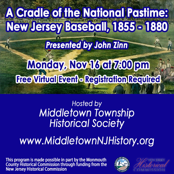 Middletown Historical Society hosts John Zinn Nov. 16 as he presents on the origins of baseball in the Garden State. A virtual lecture.