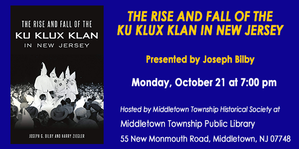 MIDDLETOWN, NJ — This October, the Middletown Township Historical Society will host Joseph G. Bilby, who will present his newest historical book, "The Rise of the Ku Klux Klan in New Jersey."