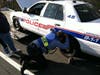 But as officers headed toward the cat, it jumped off the barrier, ran toward the shoulder of the road and hid under the police car. When officers looked under the cruiser, they “realized that the panic stricken cat had climbed and buried itself somewhere in the recesses of the undercarriage.”
