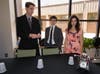 Photo 2: At the Governor’s School of Engineering and Technology held at Rutgers University, students Nickolas Eisele of Ocean City, Orrin Kigner of Springfield and Rachel Straub of Toms River created a model of a robot designed to mine methane on Titan, one of Saturn’s moons.