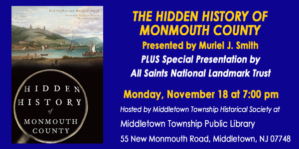 MIDDLETOWN, NJ — On Nov. 18 the Middletown Township Historical Society will host Muriel J. Smith, coauthor of the new book "Hidden History of Monmouth County."