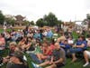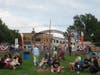 Bands play music of John Mellencamp; people gather and enjoy
