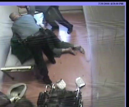 The video shows Amit Bornstein walking up to a nurse's station before guards confronted him. Bornstein is then restrained in a hallway.