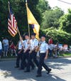 An old-fashioned town parade with lots of music, patriots and fire trucks. There will be two memorial services.