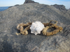 There are also Moon Snails. These shells are distinctive, as they are circular, almost dome-shaped, with slightly convex whorls that encompass the entire body of the shell. Moon Snails feed on clams and other bivalves that it finds in the sand, boring small, perfectly round holes in their shell to suck the meat out. Sometimes live Moon Snails can be seen along the beach, in a section of the intertidal zone with gentle waves.