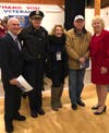 The convoy of approximately 12 tractor trailers, 25 SUV’s including both Maine and NJ State Troopers, motorcycles and a VIP Bus with Veterans, Gold Star Families, Blue Star families as well as the founder of WAA, Morrill Worcester, his wife Karen, the executive director, and his team arrived at 9:00 am to a giant American Flag draped across West Front Street by the local Fire Departments (Station 10 Lincroft and Station 7 Belford), and immediately into a school wide welcome of every student, teacher and staff member waving American flags. The CBA Pipes & Drums led the convoy along our inner roadway, Davis Drive, and then to the program to honor them in the Scire Student Activities Center.