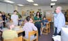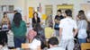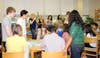 Approximately 25 new Millburn High School students and their parents met in the guidance office after completing their Monday and Tuesday morning placement tests for a PTO sponsored reception.