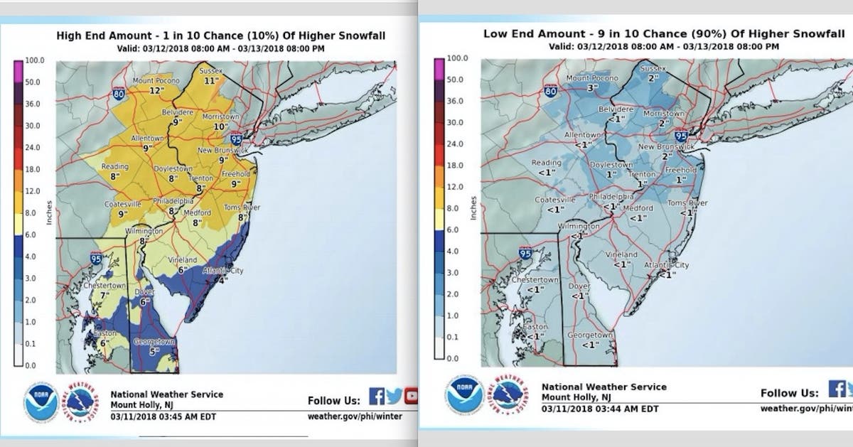 The National Weather Service offered two possible scenarios. The state could get no more than an inch if the storm pushes back out the sea. But if the trend continues, parts of the state could get as many as 11 inches.