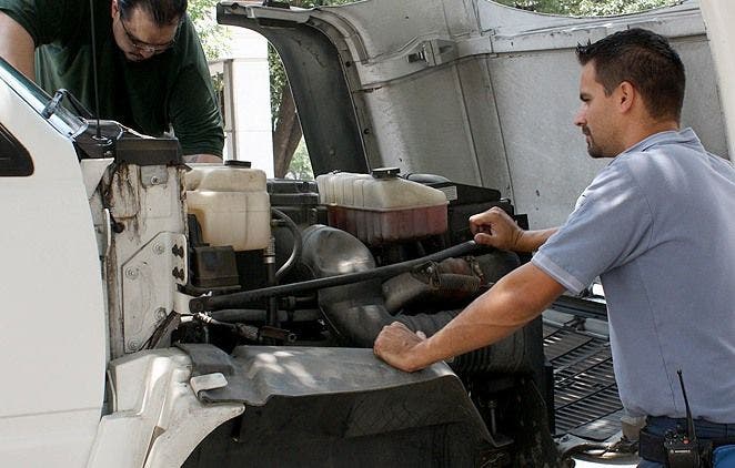 Photo: An officer supervises a federal inmate who is servicing a government vehicle (via the Federal Bureau of Prisons)