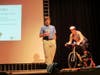 At the Bike Safety Workship, BikeWalkMontclair's Paul Mickiewicz spoke while Dickson Lane demonstrated moves on the bike on stage.