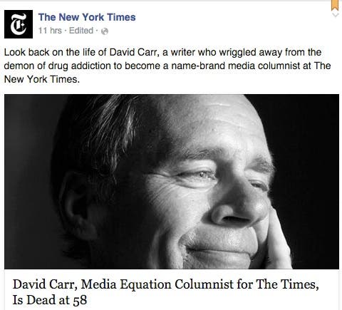 On Sunday, Carr wrote a column about Brian Williams, the NBC anchor suspended six months for lying, called “Brian Williams, Retreading Memories From a Perch Too Public.” He wrote: