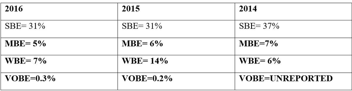 The law further creates a “Joint Venture” program with an emphasis on large construction contracts; this means for major construction jobs, large firms will partner with MBE, WBE, or VOBE firms to bid on contracts.