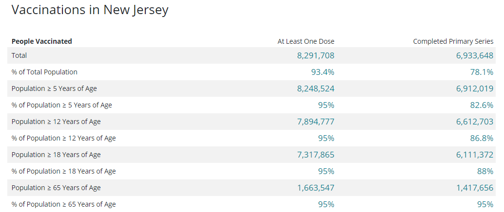 Here is the latest CDC data on COVID-19 vaccination rates in New Jersey, as of Friday.