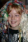 Christopher Damaskis, who announced that he turned nine this week, looked skeptically at his portrait. "I just finished it fast," he said. "I think the hair looks a little weird."