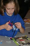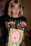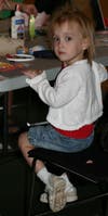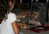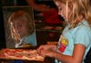 "I love art!" declared six-year-old Fiona Stanton. She paused from working on her portrait to point out her sisters working beside her. "Those are my sisters. Catie is styles, Brigit is toys, and me, I'm art."