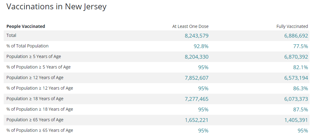 Here’s where the vaccination rates and risk levels in New Jersey currently stand, according to the Centers for Disease Control and Prevention (CDC).