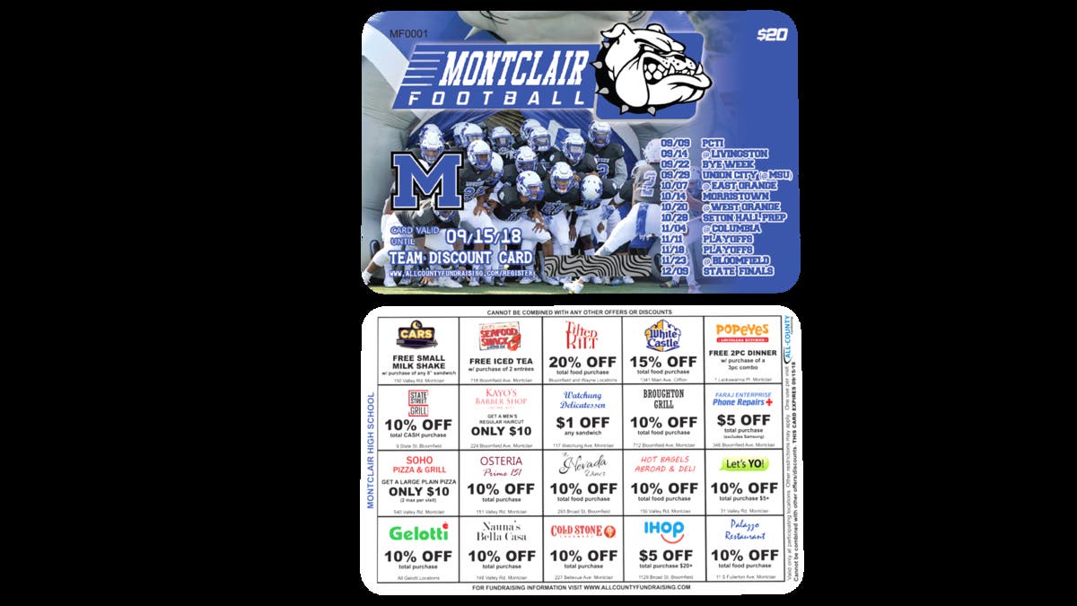 MONTCLAIR, NJ — As the Montclair Mounties gear up for their first game of the new school year, there’s a cool way that local youth sports boosters can show their support: the Annual Discount Card Fundraiser.