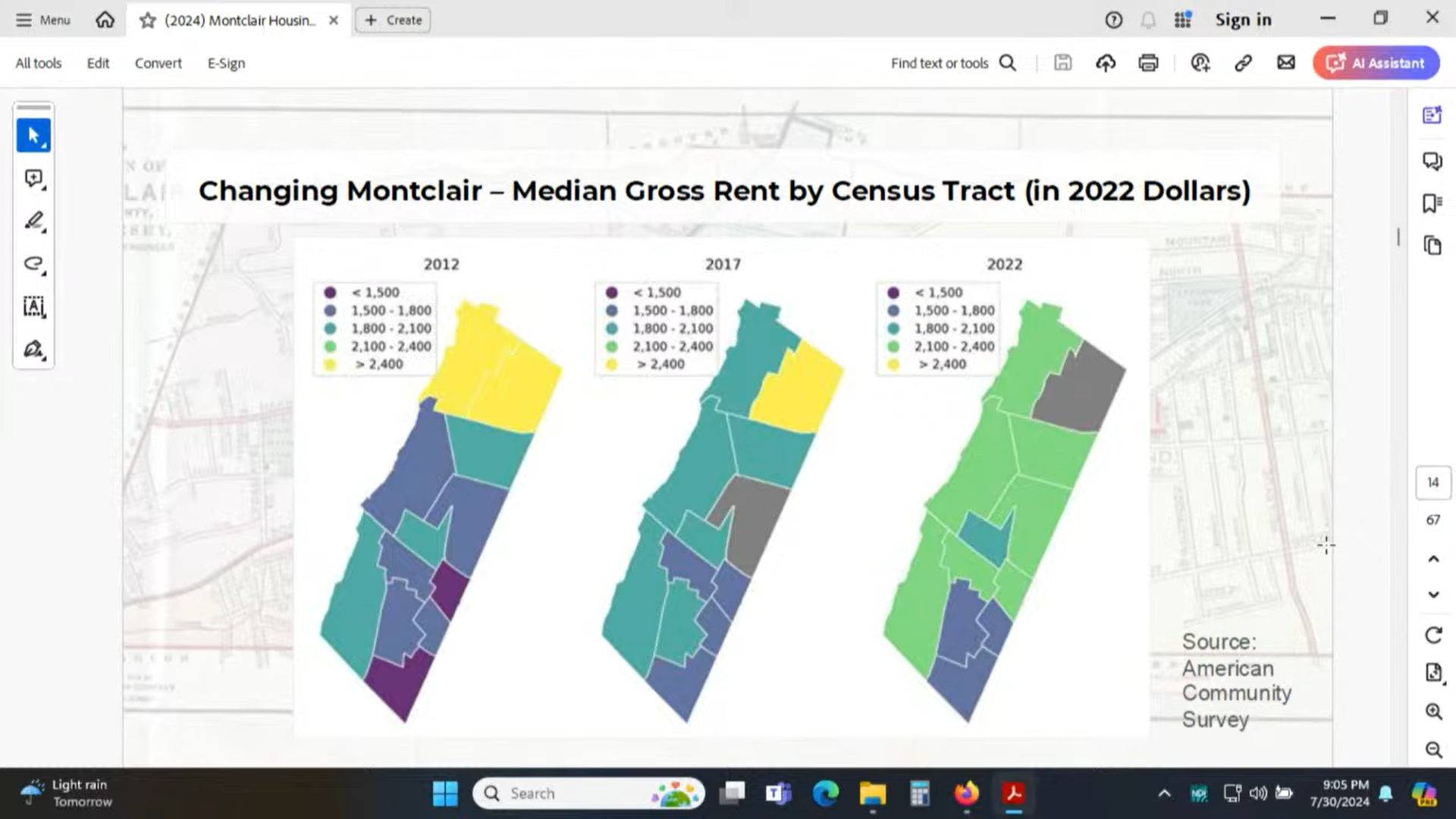 Christina Kata, a member of the commission and the nonprofit Regional Plan Association, shared slides that show rental and homeowner vacancy rates in Montclair, as well as the median gross rents across the township.
