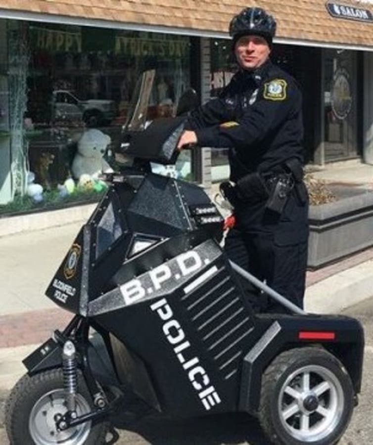 Calkin, who is assigned to the BPD Community Policing Unit, has become a common sight in downtown Bloomfield from atop the Segway-like vehicle, which gives officers increased visibility from an elevated platform.