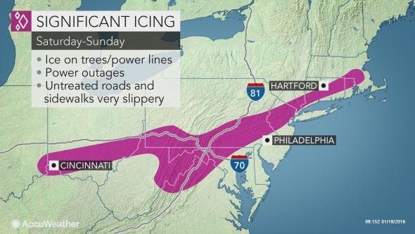 Heavy rain will then follow by overnight Saturday night into Sunday morning, leading to flooding and ice in those areas.