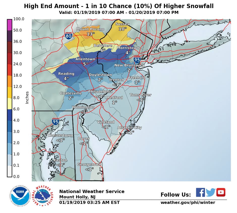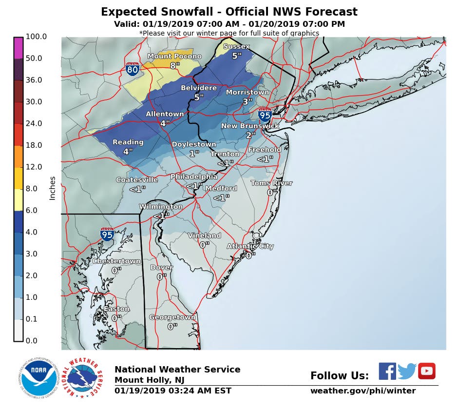 Much of the rain will come Sunday morning, mixing with snow mostly north of I-195. The wet weather will stress New Jersey's power capacity and create a mess on the roads throughout the state.