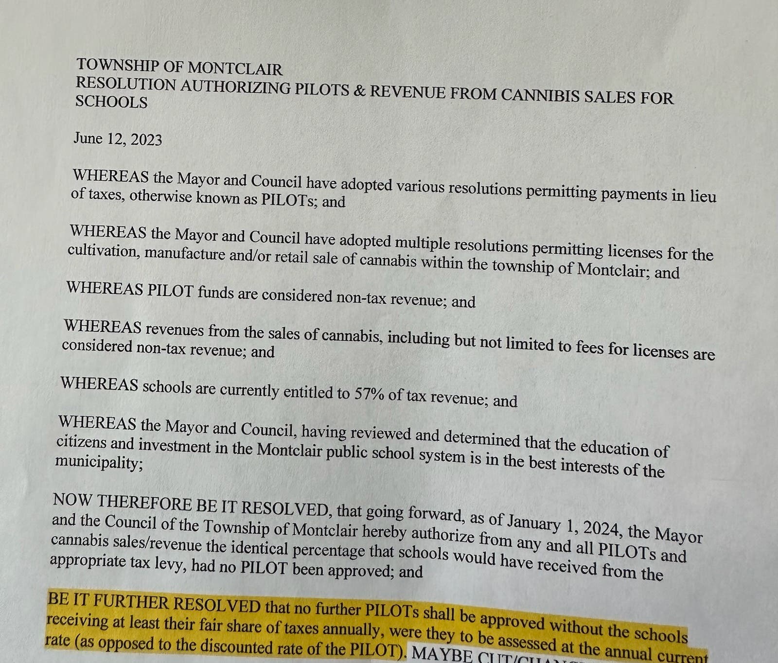 “As Montclair continues to build luxury apartments that do not pay school taxes because they pay PILOTs (payments in lieu of taxes), we must ensure schools receive a fair share of these payments, which are outside the 2% cap because they are considered non-tax revenue. Currently, the municipality keeps 95%, sends 5% to the county, and NOTHING to the schools. Not sharing PILOTs breaks our social contract: everyone in the community supports public schools at a level proportional to their property value. The wealthiest property owners in our town are getting huge property tax discounts through sweetheart PILOT agreements. Thus, instead of sharing revenue with the schools, the township gives tax breaks to wealthy developers.”
