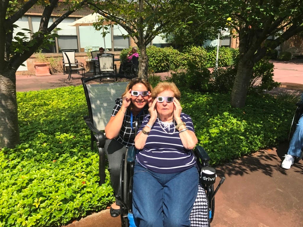 Residents at the Daughters of Israel nursing facility in West Orange participated in a solar eclipse party in the Frances Davis Garden.