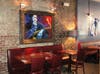 The restaurant, located next to , is spacious, with seats for at least 70 people. Original art adorns the walls as do warm deep shades of blue.