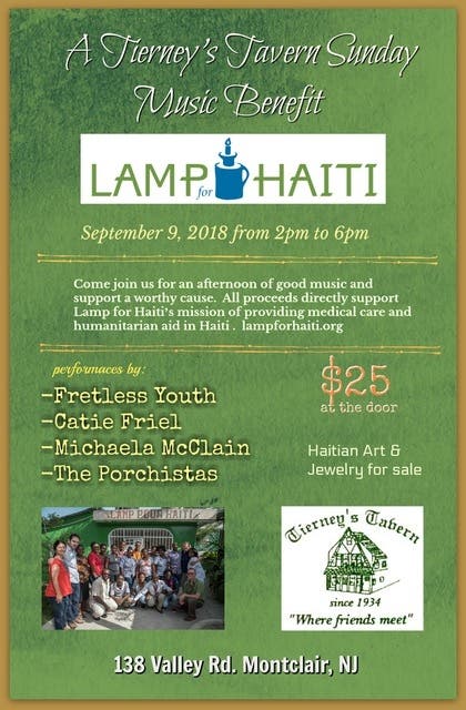Four local music acts from the Montclair area will perform a Sunday afternoon show at Tierney's Tavern to benefit Lamp for Haiti.