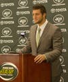 Jets' highly publicized backup QB introduced at team's Morris County training facility.