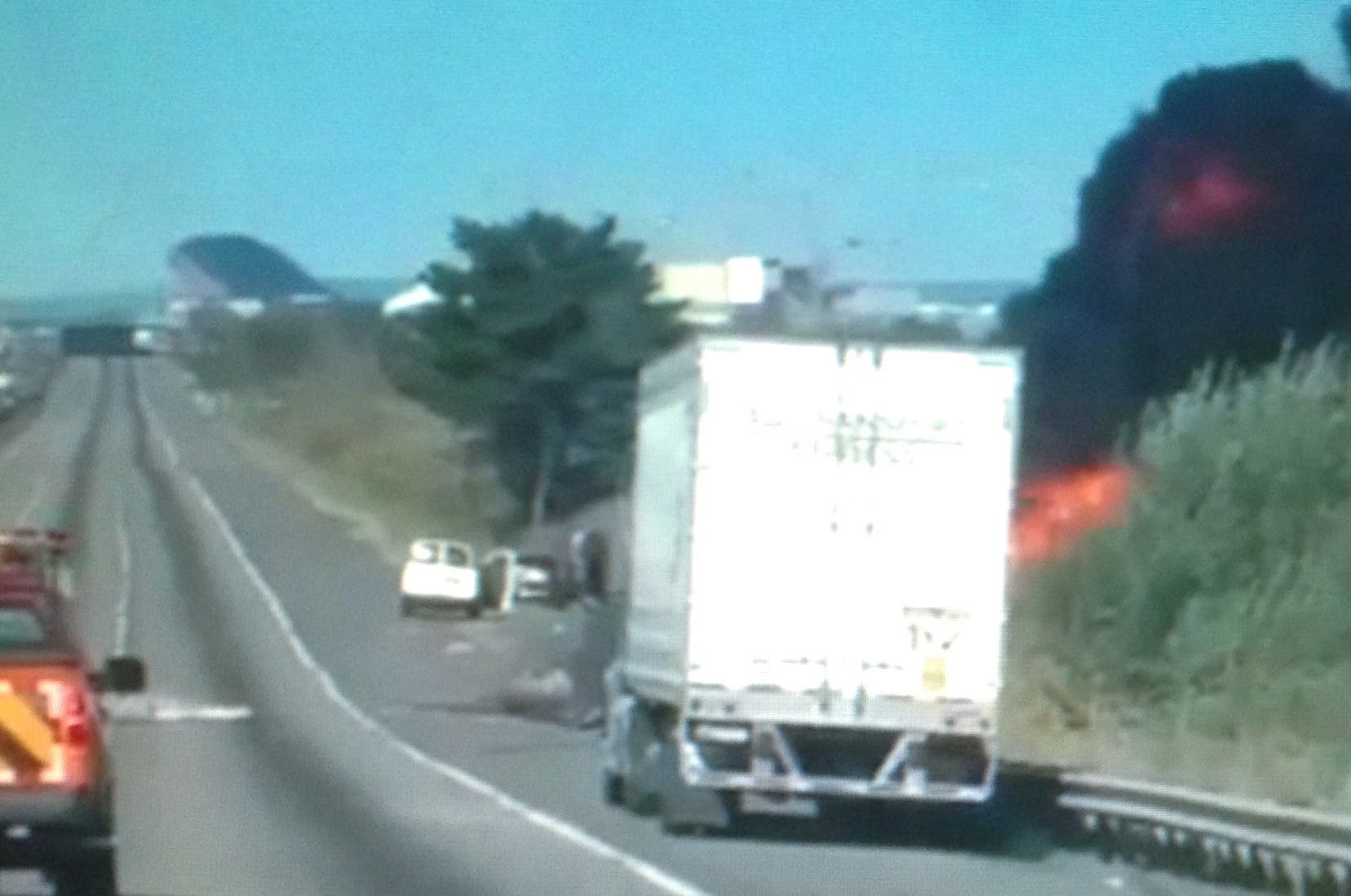 After being struck, the truck rolled over onto the right hand shoulder of the road, where it became fully engulfed in flames, Flynn said.