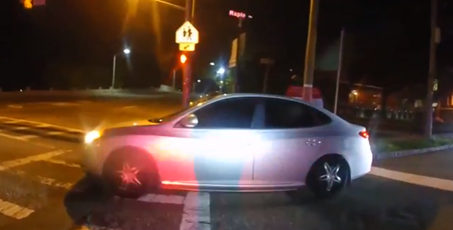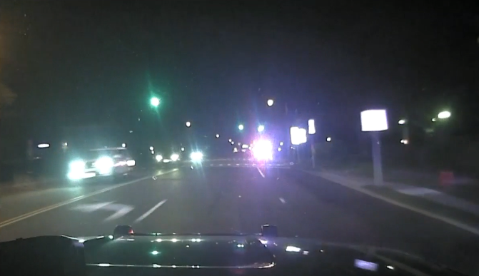 In the videos, Montclair police officers attempt to pull over a Hyundai sedan when it comes to a stop at an intersection. The sedan then speeds up and makes a right through the intersection, with police cars in pursuit.