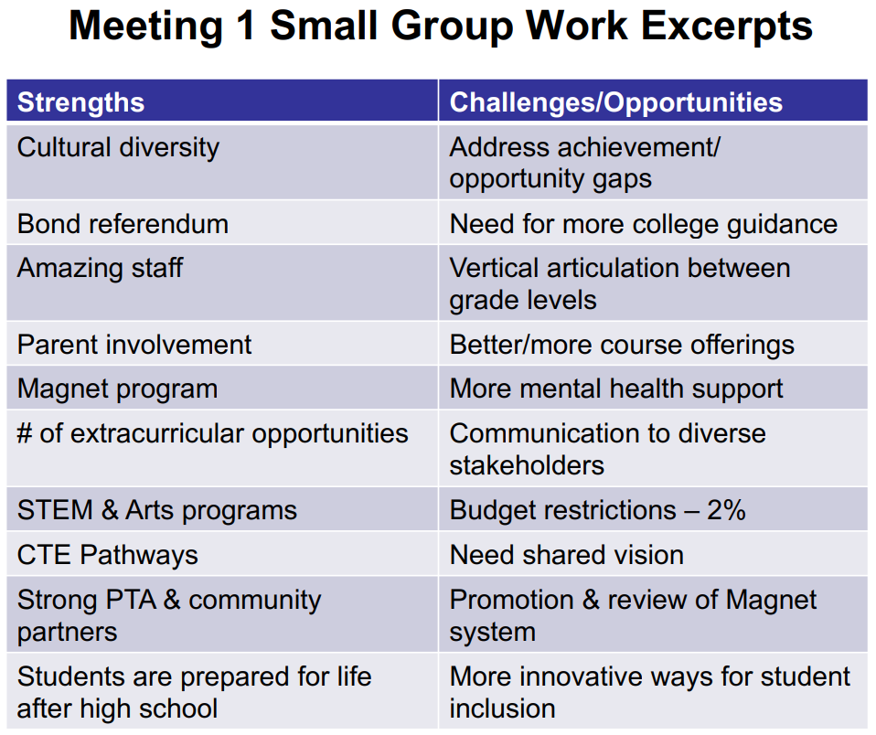 The five-year plan came together after the district held multiple workshops open to the community, seeking feedback about current challenges in the district – and suggestions for moving forward (article continues below).