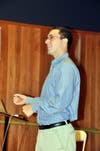 It was during Cashman's lecture that Yogi Bera made a surprise visit.