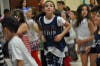 Fifth grade students Caitlin Olensky, Natalie Yu, Ethan Stozenski and Peter Elias seamlessly led all 420 Valley View Students in just over thirty minutes of non-stop movement. The four had trained since March to prepare for any possibility regarding weather or location. Together the leaders’ shirts spelled out A.C.E.S. However, because of the rainy skies, the student leaders were forced to split apart in order to share leadership responsibilities in two separate but connected venues. Leaders with the letters A. and E. (Linsky and Stozenski) went to the lunch room, while the C. and S. leaders (Yu and Elias) took charge in the gymnasium.